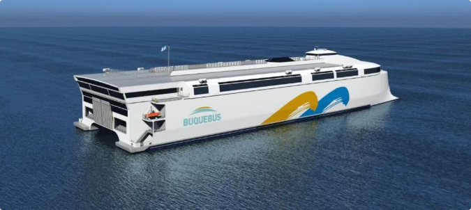 This 130-meter (426-foot) giant vessel will be able to carry over 2,100 passengers and 225 cars, operating for ferry operator Buquebus on its route between Argentina and Uruguay.