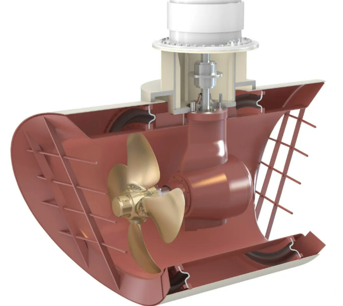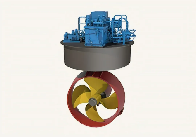 III. Azimuth ThrusterThe propeller of an azimuth thruster can rotate 360 degrees, providing thrust in all directions. This allows the ship to move and turn quickly in any direction, greatly improving its maneuverability. Azimuth thrusters are typically used on large vessels with very high maneuverability requirements, such as container ships and oil tankers.