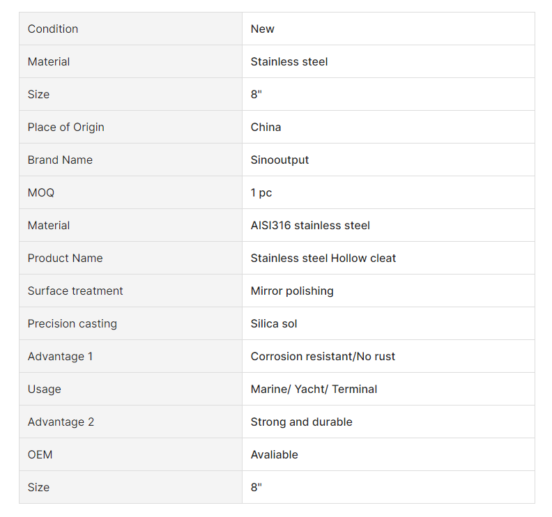 Power Mirror Polished Stainless Steel Cleat Marine hardware AISI316 Stainless Steel Hollow Base Cleat For Boat